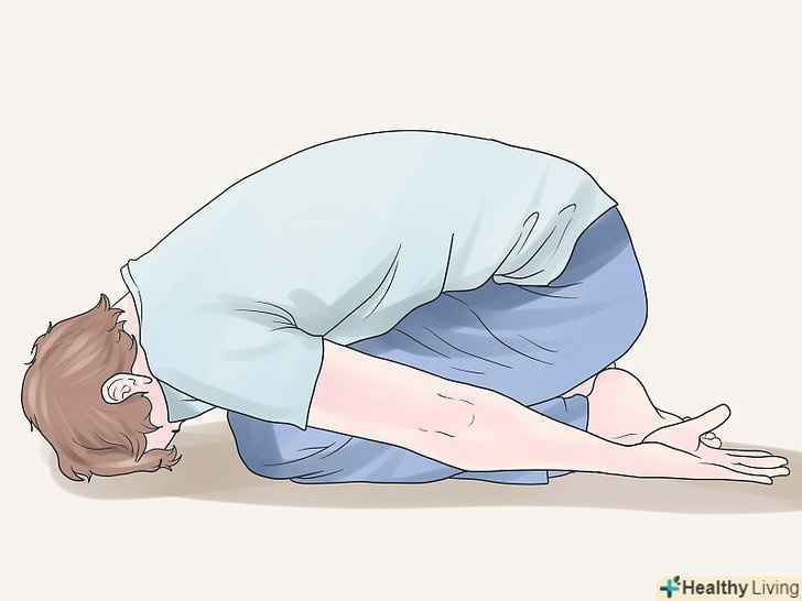 Натисніть руками, щоб знову підняти торс. нехай ваша грудна клітка знаходиться на стегнах, коліна зігнуті і підібгані під тіло. Це положення називається"поза немовляти".