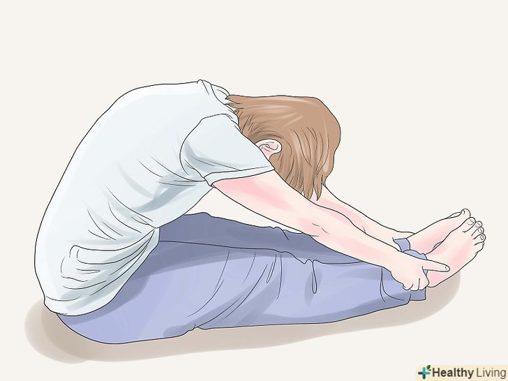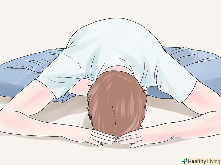Витягніть ноги прямо перед собою і нахиліться вперед, тримаючи спину прямо. це розтягне підколінне сухожилля і розслабить спину. Тягніться вперед від 30 секунд до 1 хвилини.- Якщо у вас дуже висока гнучкість і немає хронічних травм спини, встаньте з ногами на ширині стегон і повільно нахиліться вперед. Візьміться за протилежний лікоть і затримайтеся в такому положенні приблизно на 1 хвилину.