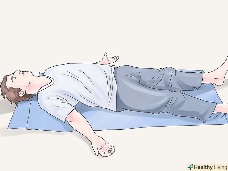 Почніть з великих пальців ніг і уявляйте, що кожен м'яз вашого тіла розслабляється одна за одною. рухайтеся від пальців до стоп, литок, і продовжуйте з кожною групою м'язів, поки не досягнете верхівки голови. Зробіть глибокий вдих і видихніть кожним м'язом, уявляючи, що ваше тіло розслабляється.- Багато людей відчувають невагомість, коли вони уявляють, як тіло розслабляється. У багатьох методиках йоги це положення називають "Савасана". Це процес розслаблення тіла під час лежання під кінець заняття.