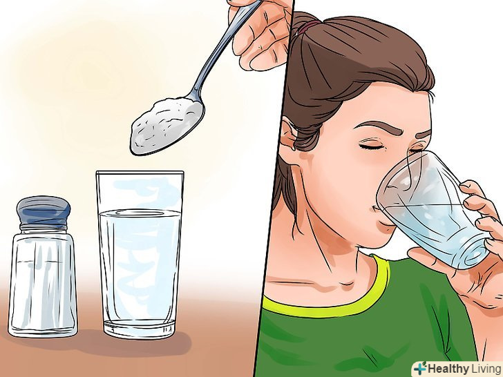 Випийте солону воду.Будьте дуже обережні: від надмірної кількості солоної води може наступити сильне зневоднення і навіть смерть. Розмішайте три чайні ложки солі на 450 мілілітрів води і повільно випийте розчин. Приблизно через півгодини повинні початися блювотні позиви.