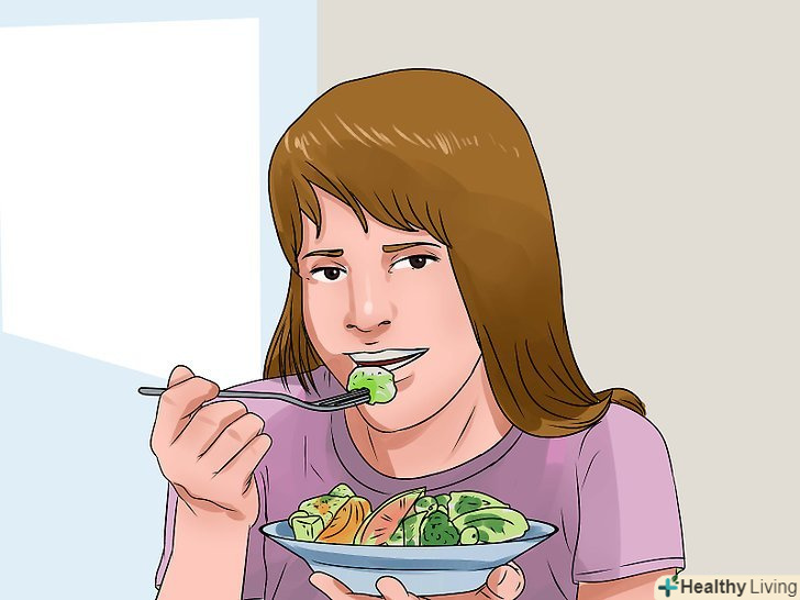 Їжте фрукти, овочі та цільнозернові продукти.такі продукти прискорюють травні процеси.[4]