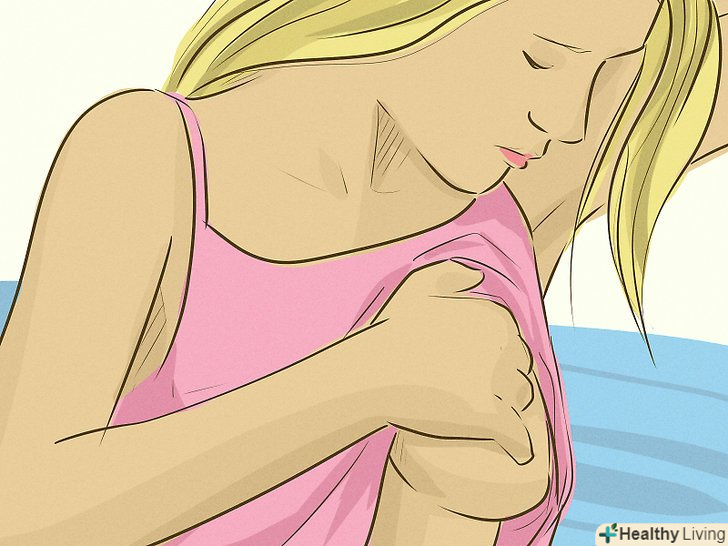 Пам'ятайте і про інші симптоми.вони можуть проявлятися або не проявлятися при наявності ущільнень. Якщо вони проявляються, це можна вважати причиною для занепокоєння, і в цьому випадку потрібно якомога швидше потрапити на прийом до лікаря.[9]- Зверніть увагу на криваві або гнійні виділення з сосків.