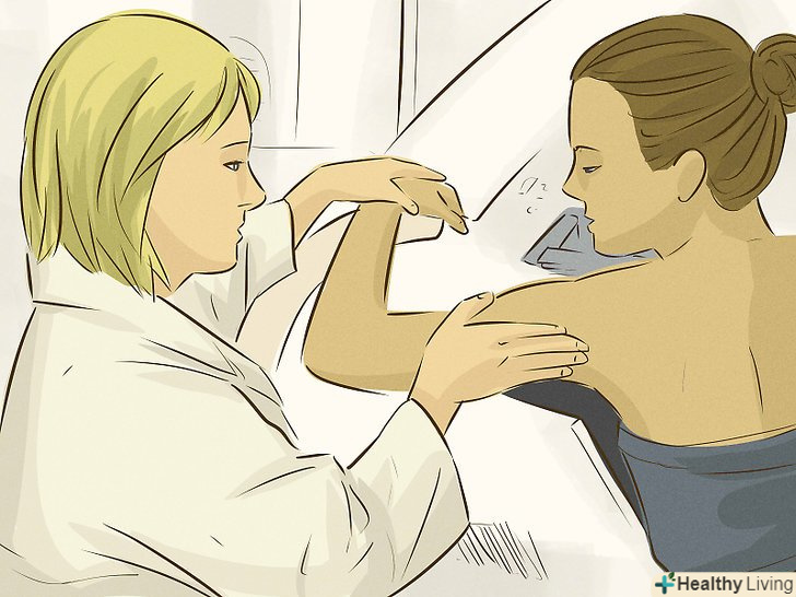 Запишіться на мамографію.проходьте це обстеження щорічно або за призначенням лікаря. При цій процедурі використовується рентгенівський промінь для визначення наявності ненормальних утворень в грудях.- Більшість злоякісних пухлин виявляють за допомогою цього обстеження.[12] деякі жінки проходять його регулярно (наприклад, жінки після 40 років, у яких немає симптомів і ущільнень), іншим призначають в якості способу отримання інформації про пухлину, що дозволяє зрозуміти, чи вимагає вона лікування.