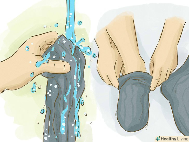 Намочіть шкарпетки і оберніть їх навколо щиколоток. звучить дивно, але це творить чудеса при високій температурі. Бажано зробити такий компрес на всю ніч. Візьміть пару бавовняних шкарпеток, досить довгих, щоб обернути ними щиколотки. Гарненько намочіть їх в холодній проточній воді. Вичавіть зайву воду і оберніть носками ноги. Зверху оберніть чистими вовняними шкарпетками. Залиште шкарпетки на всю ніч. Сховайтеся ковдрою.- Деяким дітям це не подобається, але зазвичай вони заспокоюються, як тільки відчувають полегшення.