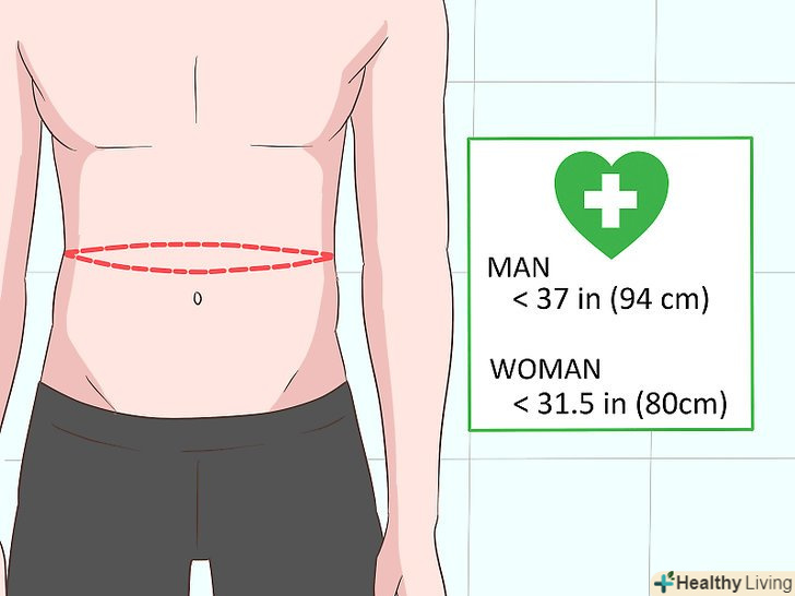 Перевірте, наскільки здорові ваші параметри. здоровим показником обхвату талії у чоловіків вважається талія менше 94 см, а у жінок — менше 80 см.[4] більш високе значення обхвату талії для своєї статі говорить від тому, що у вас може бути схильність до серйозних проблем зі здоров'ям, включаючи пороки серця та інсульти.[5] також занадто великий розмір талії може говорити про вашу схильність до діабету другого типу і раку.[6]- Якщо ваша талія виходить за межі здорових показників, ймовірно, вам слід проконсультуватися з лікарем.