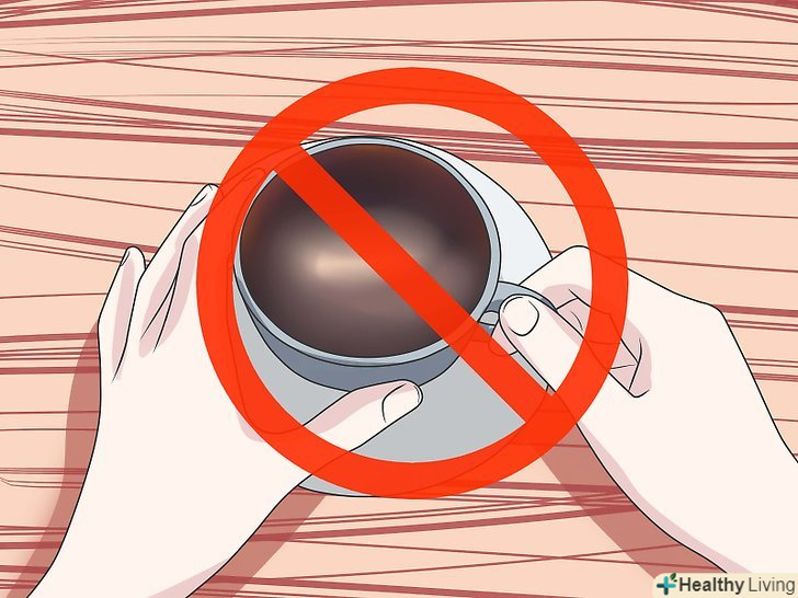 Відмовтеся від кофеїну.напої та продукти, що містять кофеїн, також можуть посилити судоми і відчуття здуття.[11] через кофеїну відбувається звуження кровоносних судин, підвищується тиск і посилюються судоми. При відмові від кофеїну цих ефектів не відбувається.[12]- Тому варто виключити зі свого раціону харчування каву і міцний чай за тиждень до передбачуваного настання місячних.