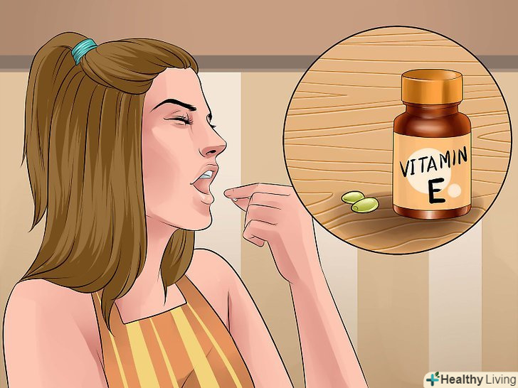 Спробуйте добавки вітаміну Е. дослідження показали, що вітамін Е в дозі 500 МО в день знижує больовий симптом в період менструації. Найкраще почати приймати вітамін Е за два дні до передбачуваного початку менструації, а закінчити прийом через 3 дні після початку. Таким чином, ви будете приймати цю добавку протягом 5 днів.[37]