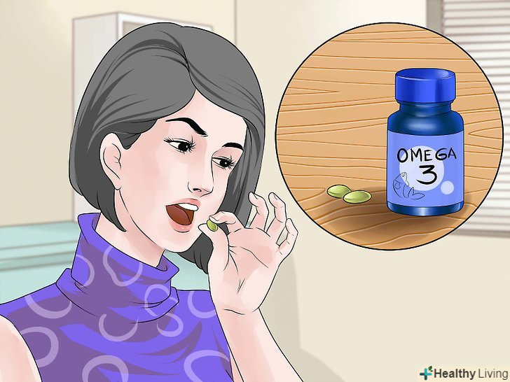 Приймайте добавки, що містять омега-3 жирні кислоти.омега-3 жирні кислоти зазвичай у великій кількості містяться в рибі і риб'ячому жирі. Але їх також можна приймати у вигляді таблеток або в рідкій формі в якості харчової добавки.[38]- Риб'ячий жир є свого роду протизапальним і допомагає знизити біль в період менструації.