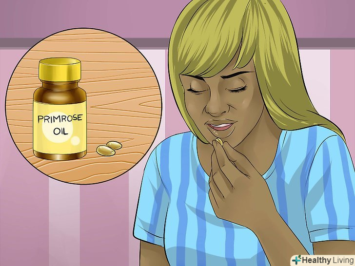 Спробуйте масло енотери.масло енотери можна приймати як в рідкій формі, так і в формі таблеток. Воно містить незамінну гамма-ліноленову кислоту. Вона блокує вироблення простагландинів у вашому організмі, які викликають біль при спазмах в період менструації.[41]- Для кращої ефективності рекомендується приймати 500-1000 мг на день.[42]