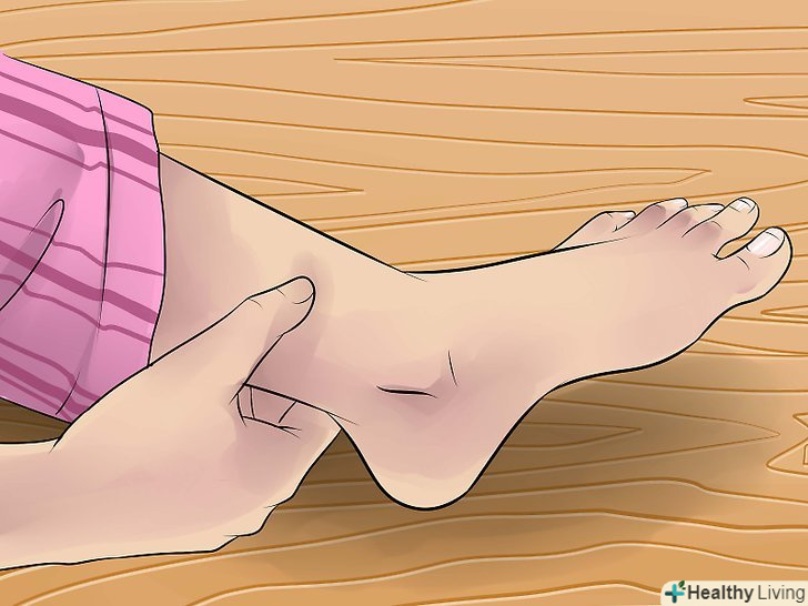 Навчіться акупунктурного масажу.справа в тому, що на нашому тілі є певні акупунктурні точки, наприклад, на внутрішній стороні ноги (приблизно на три см вище щиколотки). Цілком можливо, що стимулювання цих точок допоможе зменшити біль і судоми.[14][15]- Акуратно прикладіть пальці до цієї точки і натискайте на неї протягом п'яти хвилин, щоб зменшити дискомфорт.