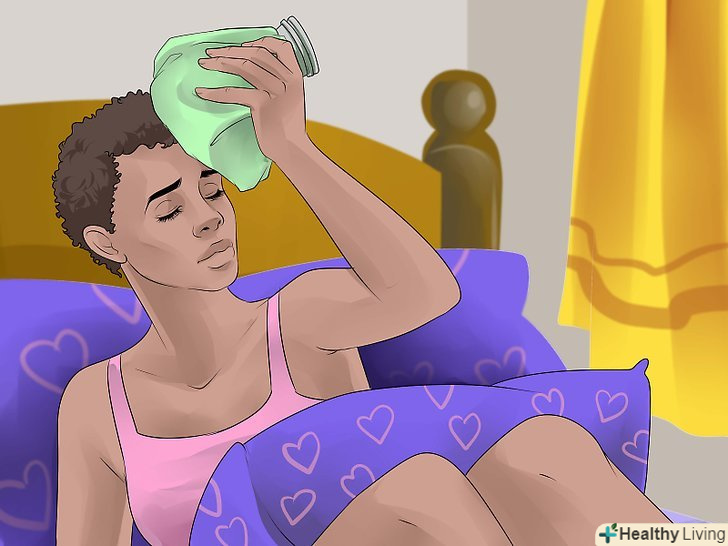 Щоб зменшити головний біль, спробуйте прикласти невеликі шматочки льоду.справа в тому, що прямо перед початком менструації сильно змінюється гормональний фон, що стає причиною головного болю, а іноді навіть мігрені. Один із способів зняти головний біль-прикласти до голови або шиї мокрий холодний шматок тканини або лід (до того місця, де найбільше відчувається біль).[17]- Якщо ви все ж вирішили прикласти лід, необхідно спочатку обернути його в рушник. Ні в якому разі не прикладайте лід (або заморожені предмети) безпосередньо на шкіру, тому що це може викликати роздратування і навіть місцеве обмороження!