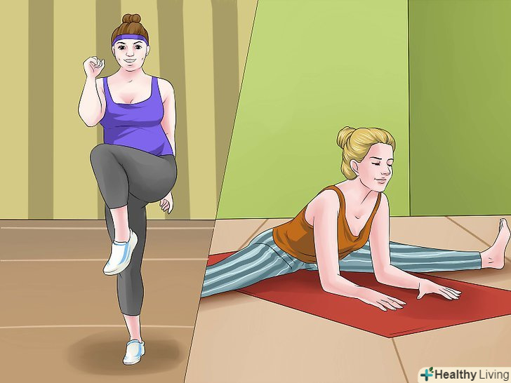 Регулярно займайтеся спортом.фізичні вправи-важлива частина здорового способу життя, крім того, фізична активність допомагає зменшити судоми та інші неприємні відчуття під час місячних. Два найбільш ефективних види фізичних вправ - це йога і аеробіка.[18]- Намагайтеся займатися фізичними вправами хоча б 30 хвилин в день по 5 разів на тиждень.[19]