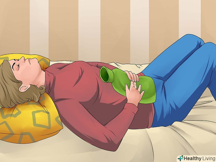 Прийміть теплу ванну або прикладіть до живота грілку.тепла ванна (або душ), а також грілка допоможуть зменшити частоту і тривалість судом під час місячних.[20] грілку потрібно прикласти до живота (трохи нижче пупка).[21]- Будьте обережні і не засніть з грілкою на животі! Якщо є така можливість, краще купити для цієї мети грілку з автоматичним вимиканням після закінчення певного часу.