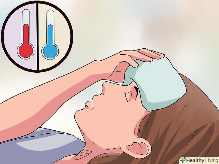 Зробіть гарячий або холодний компрес.іноді мігрень вдається зняти холодом або теплом. Спробуйте прикладати холод або тепло до ділянки, де відчувається біль, і подивіться, чи стане вам краще. Намочіть тканину гарячою або крижаною водою з-під крана, відіжміть надлишки води і прикладіть тканину до голови.[4]- Залиште компрес на 15 хвилин.
