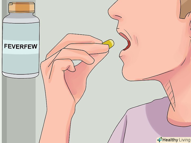 Спробуйте приймати рослинні препарати піретруму дівочого.щоб знизити інтенсивність болю і запобігти нападам мігрені, спробуйте приймати піретрум щодня. Ефективність цієї рослини не була доведена клінічно, проте багатьом воно допомагає, тому спробувати варто.- Рекомендується приймати капсули з травою глибокої заморозки,[7] оскільки чай з цієї рослини виходить гіркий і може дратувати слизову оболонку рота.[8]