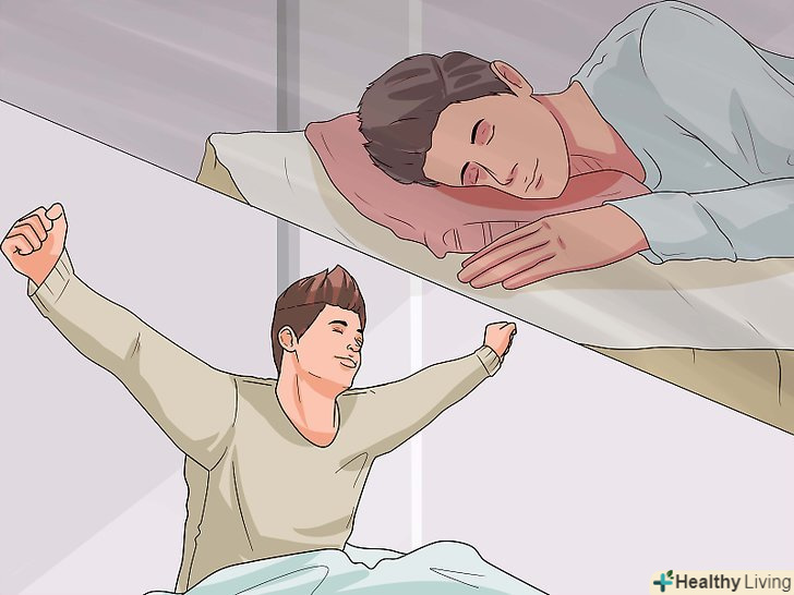 Лягайте спати і вставайте в один і той же час кожен день.провокуючим фактором мігрені можуть бути гормональні коливання. Організм виробляє гормони (Мелатонін, кортизол) в залежності від кількості і часу сну. Ці коливання, а також нестача сну, можуть провокувати мігрень.[16]