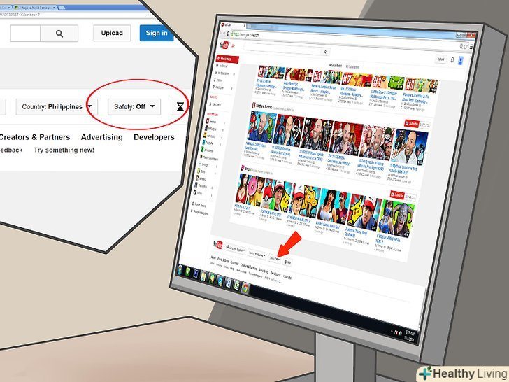 Вибирайте засоби аудіовізуальної інформації.деякі засоби аудіовізуальної інформації в більшій мірі поширюють небажані або небезпечні матеріали. Через це необхідно вибрати тільки певні засоби аудіовізуальної інформації. Фільми дуже легко відібрати за їх рейтингом, а ось зробити це з телевізійними передачами набагато складніше. Вимкніть канали, що показують порно, і переглядайте передачі до того, як показати їх членам вашої родини. Найважче контролювати контент в Інтернеті, тому використовуйте фільтри або істотно обмежте час, проведений членами вашої родини в мережі.- Наприклад, YouTube має фільтр контенту, який допоможе вам захистити себе і вашу сім'ю від роликів для дорослих. У нижній частині будь-якої сторінки YouTube натисніть кнопку " Safety: Off» (Безпека: викл).