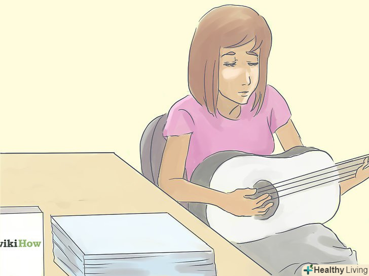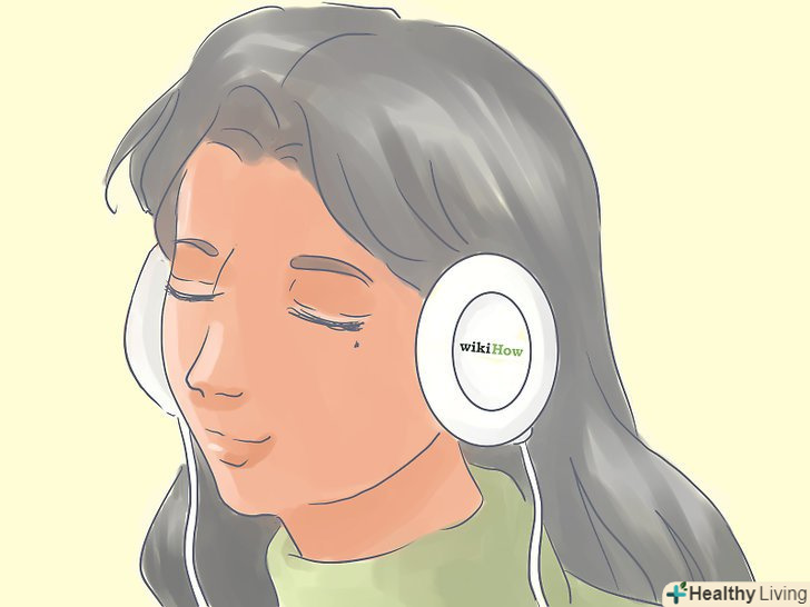 Послухайте музику.музика дуже сильно впливає на настрій, тому виберіть спокійну композицію або пісню, яка пов'язана зі щасливими спогадами.[10]- Якщо у вас болить горло, то не погіршуйте стан гучним співом улюбленої пісні.