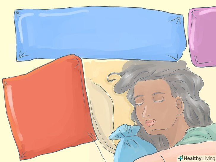 Використовуйте кілька подушок.подушки відмінно допомагають розслабитися завдяки своїй м'якості і зручності. Використовуйте відразу кілька подушок, щоб лягти якомога зручніше і розслабитися. Правильний вибір подушок покращує якість сну і прискорює одужання.[13]- При виборі подушки звертайте увагу на матеріал виготовлення і положення, в якому ви спите.