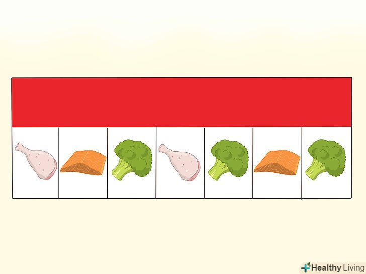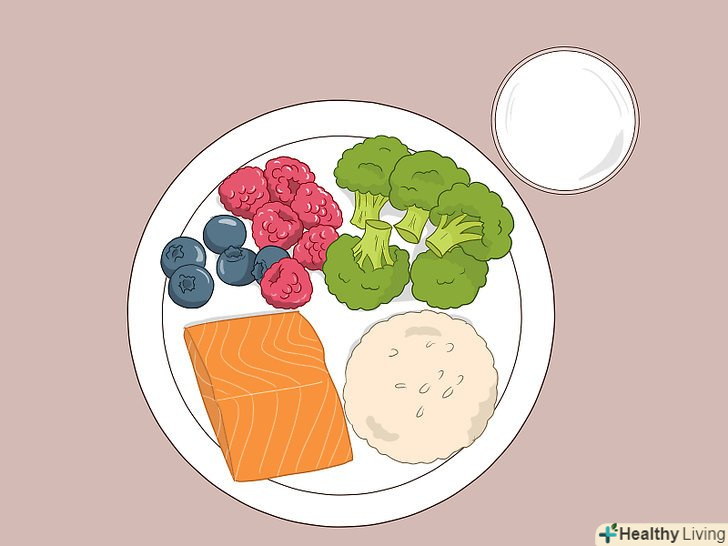 Харчуйтеся правильно.половина порції повинна складатися з овочів і фруктів.[4] додавайте до них нежирні продукти, багаті білком, молочні продукти і злаки. Ви відчуєте себе набагато краще після переходу на новий раціон. Спочатку, ймовірно, вам буде не вистачати солодкого, однак, як тільки ви подолаєте цю залежність, стане набагато легше.- Пам'ятайте, що не всі жири шкідливі. Корисні жири можна знайти в багатій жиром рибі, такий як лосось або тунець, в авокадо, горіхах і оливковій олії. Ці продукти необхідні для збалансованої дієти.