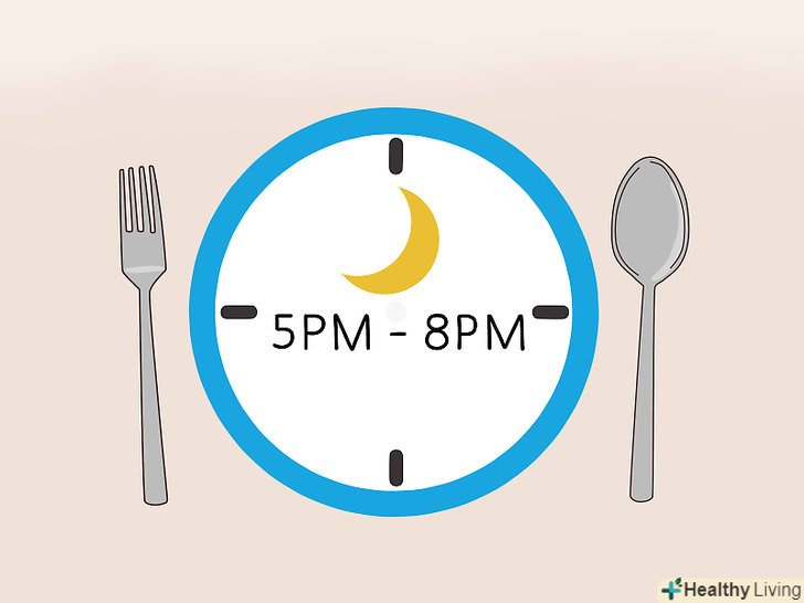 Їжте в правильний час.правильний час прийому їжі-це запорука здоров'я. Щоб їжа легко засвоювалася ввечері, вечеряйте між 17: 00 і 20: 00 вечора; уникайте пізніх перекусів, які навантажать вас зайвими калоріями і можуть порушити сон. Якщо вам необхідний перекус на ніч, виберіть несолоні горіхи, насіння, фрукти або овочі.- Не їжте за 3-4 години до сну, якщо помічаєте порушення сну.
