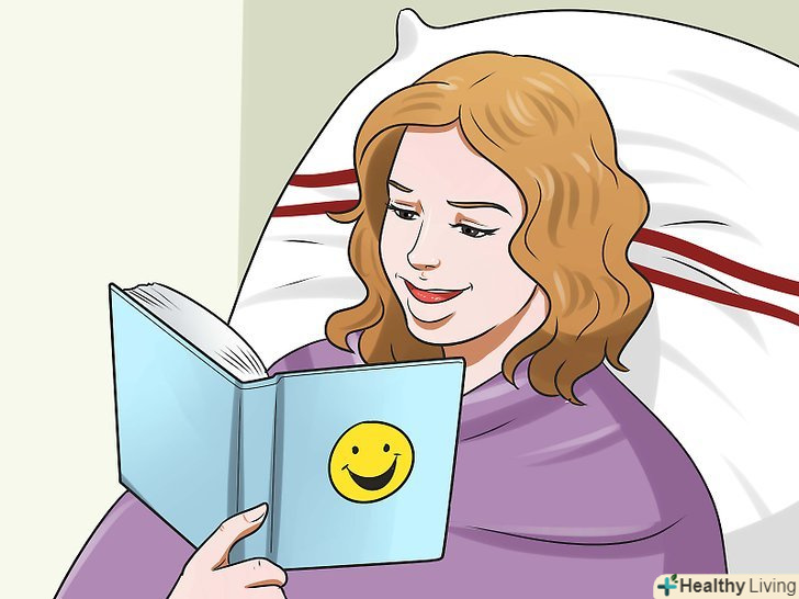 Займіться чимось приємним.хвороба є прекрасним приводом дати собі поблажку і зайнятися тим, на що у вас не вистачає часу в звичайні дні. Наприклад, подивіться улюблене телешоу, яке ви пропускали через незручний час показу. Можна також влягтися в ліжку, розмістивши біля себе стопку непрочитаних журналів, і зайнятися їх неспішним переглядом. Тепер ви можете дозволити собі це! Однак пам'ятайте при цьому, що вибране заняття повинно покращувати ваш настрій.[5]- Під час хвороби ви можете бути надмірно емоційні. Це означає, що зараз не найкращий час для перегляду таких передач, як кримінальна хроніка. Сумна або занадто серйозна передача може посилити почуття тривоги.