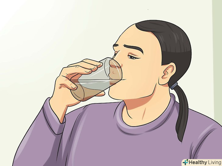 Слідкуйте за тим, щоб ваш організм не відчував нестачі рідини.під час хвороби вашому організму потрібно більше води, ніж зазвичай. Наприклад, якщо у вас жар, частина рідини може виходити з потом. Якщо у вас діарея або блювота, це також призводить до додаткових втрат рідини. Вам буде важче відновитись, якщо ви не відновите ці додаткові втрати. Подбайте під час хвороби про рясне пиття.[7]- Прекрасно підійде проста вода, хоча можна використовувати і інші, більш приємні на смак напої. Наприклад, для заспокоєння розлади шлунка можна пити гарячий імбирний чай.
