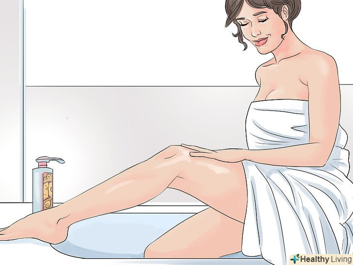 Прийміть теплу ванну.щоб ваша шкіра була здоровою, ванна або душ повинні бути теплими, але не гарячими. Якщо вода буде занадто гаряча, це може викликати лущення шкіри. Не слід занадто сильно обробляти шкіру скрабом, щоб не викликати роздратування.[1] користуйтеся м'яким милом. Слідкуйте, щоб на ньому було написано "для чутливої шкіри."[2]