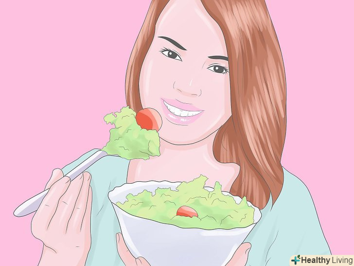 Правильно харчуйтеся.Слідкуйте за тим, щоб у вашому раціоні щодня були овочі та фрукти. Обов'язково включіть в свій раціон пісні білки і цільні злаки. Намагайтеся їсти фрукти і овочі, багаті вітаміном С, наприклад апельсини, так як вони сприяють здоров'ю шкіри.[23]