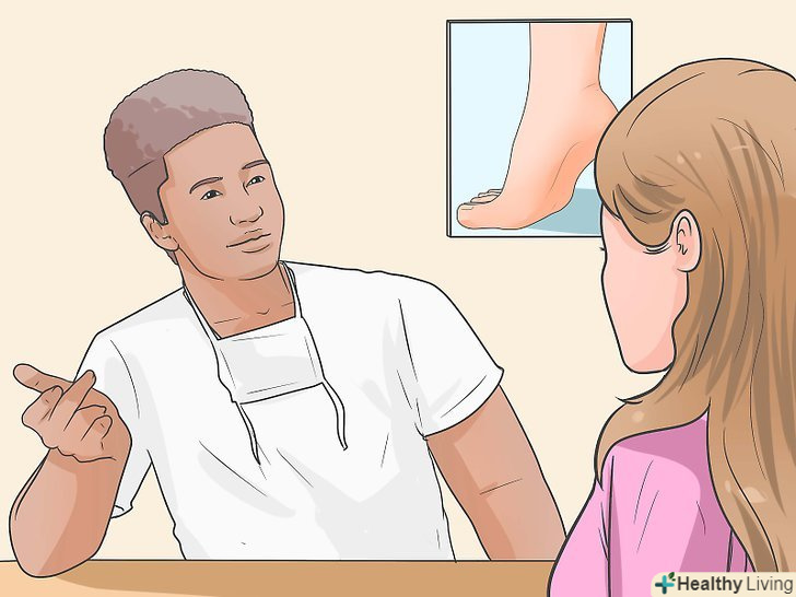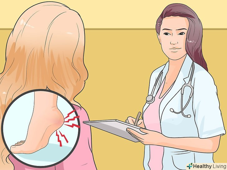 Проконсультуйтеся з лікарем, якщо симптоми зберігаються більше двох тижнів.зверніться до лікаря, якщо ваш стан не поліпшується, а погіршується, або якщо ви відчуваєте гострий біль. [28]- Обов'язково зверніться до лікаря, якщо ви помічаєте почервоніння або набряк, або якщо вам важко переносити навіть мінімальне навантаження на стопах.[29]