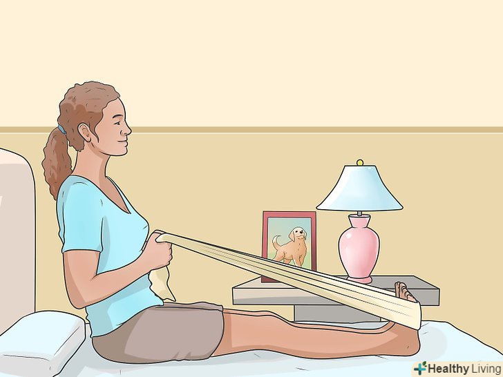 - Покладіть рушник або предмет з тканини на підлогу, візьміть предмет пальцями ніг і потягніть його до себе. Утримуйте положення стопи протягом 30 секунд, поміняйте ноги і повторіть вправу.[17]