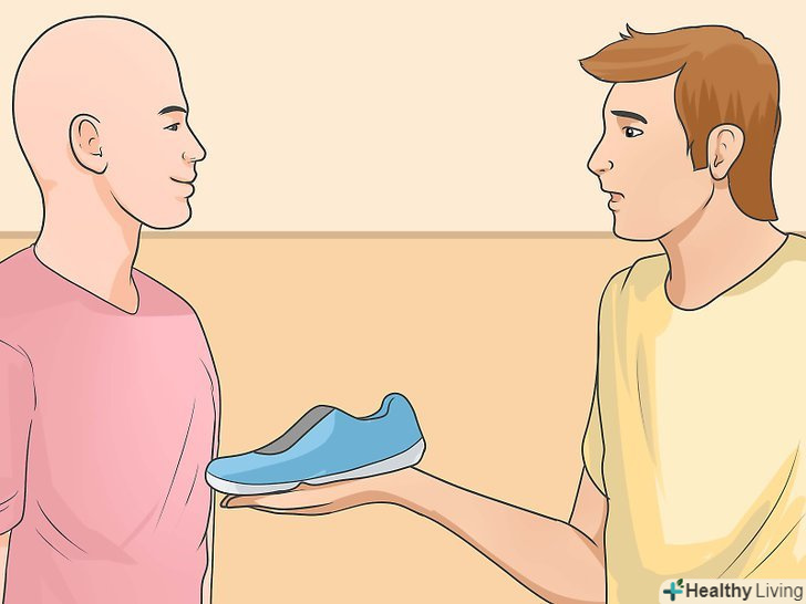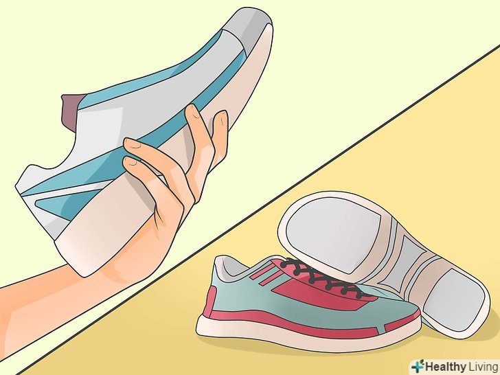 Носіть підтримуючу взуття.вибирайте взуття, яка буде вам за розміром, а також зможе підтримувати звід стопи. Крім того, взуття повинна бути з хорошою амортизацією в області п'яти або з супінатором. Також взуття повинна мати вузьку частину підошви між каблуком і стопою, яка буде підтримувати звід стопи. [4]- Правильно сконструйована взуття повинна мати жорстку вузьку частину підошви між каблуком і стопою, яка підтримує звід стопи. На жаль, ця частина взуття не видно, тому важко сказати, чи є цей елемент в тій чи іншій парі. Якщо туфель легко згинається посередині і виглядає неміцним, то, швидше за все, він не має вузької частини підошви між каблуком і стопою.[5]