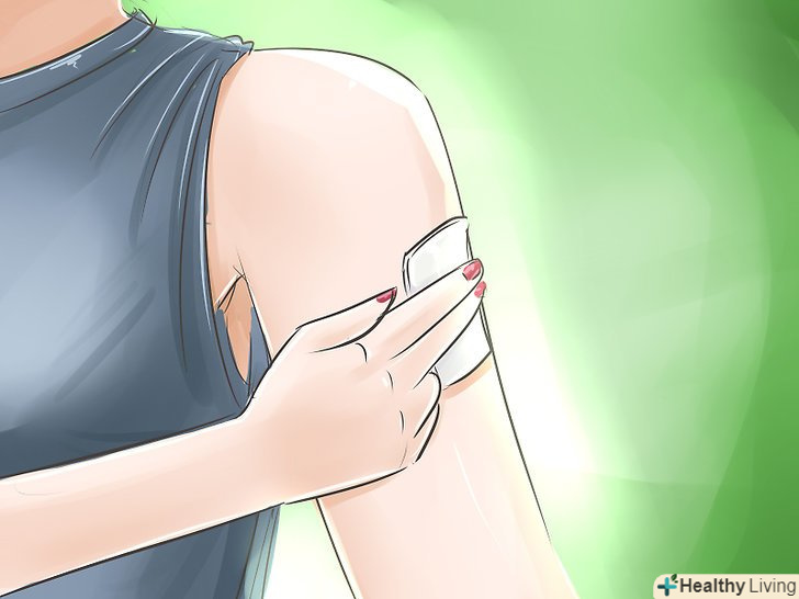 Визначитеся, чи будете ви колоти ін'єкцію внутрішньом'язово в плечі або сідницю.Ін'єкція в сідницю вважається менш болючою і її зробити легше, ніж в плече. Якщо ви робите собі укол самостійно, використовуйте дзеркало.- Знайдіть верхню праву або ліву м'яз, якщо зібралися колоти в сідницю. Якщо ви розділите м'яз на чотири сектори, то ви повинні будете ввести її в верхній зовнішній сектор, щоб уникнути потрапляння в нерв. Це найбільш жирна або м'язиста область нижче стегна, так що намацування цієї м'ясистої області рукою буде гарантувати вам, що ви визначили правильне місце.[4]