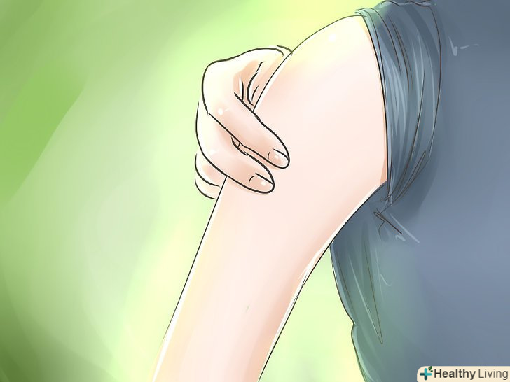 - Знайдіть місце для ін'єкції на плечі. Знайдіть край плеча, де воно плавно спускається вниз. Використовуйте два пальці, щоб вибрати точку уколу-один-два дюйми (2.5 до 5 см) нижче костистої області плеча. Область повинна бути трохи м'ясистою і трохи до задньої частини вашої руки, а не передній стороні.