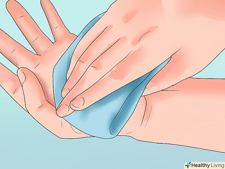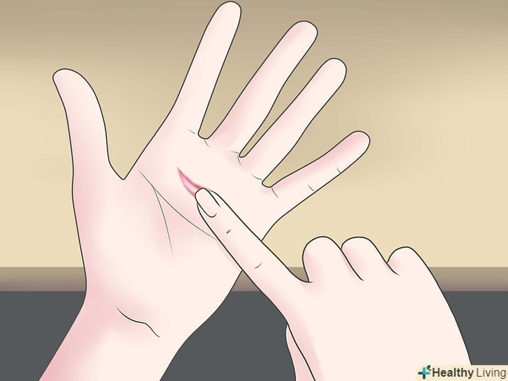 Зведіть краю рани.покладіть вказівний і великий пальці вільної руки з двох сторін рани, а потім зведіть їх і затисніть краю.[5]