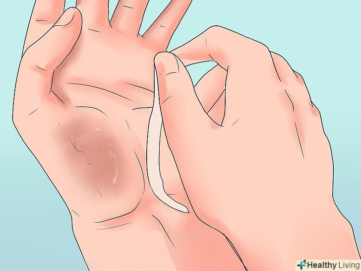 Не мочіть рану, поки вона закрита смужками. Якщо смужки намочити, вони можуть відклеїтися. Тому рана повинна бути сухою протягом усього часу, поки вона закрита смужками. Душ можна приймати, тільки якщо вода не намочить рану.[12]- Не приймайте душ, якщо є ймовірність, що ви намочите рану. Поки рана не заживе, обтирайте тіло мокрою губкою.