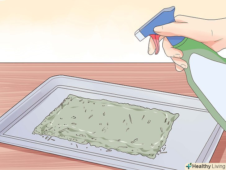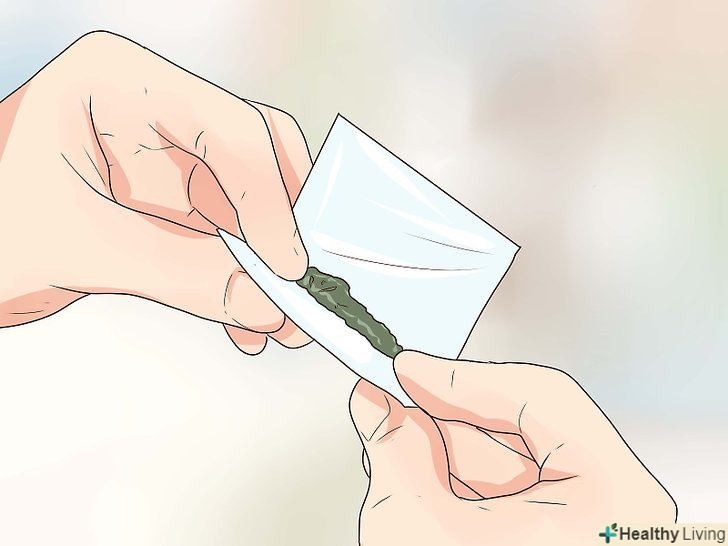 Зволожуйте суміш, якщо трави були висушені заздалегідь.якщо ви купили вже висушені трави, то необхідно трохи зволожити суміш, щоб вона краще горіла. [15] викладіть куплену траву тонким шаром на деко, велику тарілку або пергаментний папір. За допомогою обприскувача розпиліть невелику кількість чистої води на трав'яну суміш, щоб вона стала трохи вологою.[16]- Щоб не допустити утворення цвілі, зволожуйте стільки суміші, скільки збираєтеся відразу використовувати. Якщо ви заготовили велику кількість трав'яної суміші, то зберігайте її в герметично закритому контейнері і зволожуйте безпосередньо перед використанням.