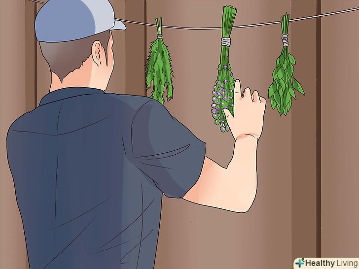 Висушіть трави.ви можете купити вже висушені трави або зібрати і висушити їх самостійно. Вибравши другий варіант, ви зможете проконтролювати, наскільки трава вийде сухою (краще якщо трава, використовувана для сигарет, не буде занадто сухою і хрусткою). [11] Зв'яжіть трави в невеликі пучки дротом, гумкою, мотузкою або ниткою, і підвісьте в перевернутому стані на кілька днів, щоб вони підсохли (стежте, щоб трави не пересохли).- Існує і більш швидкий спосіб сушіння. Для цього ви можете використовувати духовку. Розкладіть трави в один шар на деко і включіть духовку на найнижчій температурі. Не залишайте її без нагляду. Можна також використовувати дегідратор.
