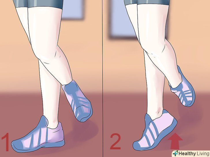 - Одночасно відірвіть обидві п'яти від землі, піднімаючись на подушечках ступень наскільки можна вище. Потім повільно опустіть п'яти і притисніть ступні до підлоги.