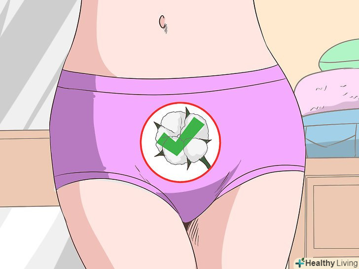 Носіть вільну нижню білизну з бавовни.Щоб область геніталій залишалася сухою, носіть бавовняну нижню білизну, яка не затримує вологу. Вибирайте вільне білизна, щоб воно не натирало геніталії. Наприклад, замість щільно облягаючих трусів краще носити вільні труси у вигляді шортів (так звані «сімейні труси»).[17]- Необхідно щодня міняти нижню білизну, щоб мікроби не дісталися до сечівника.