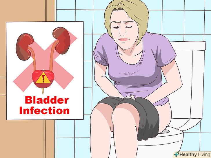 Зверніть увагу на біль при сечовипусканні, а також на змінився зовнішній вигляд сечі.бактеріальна інфекція сечівника і сечового міхура супроводжується болем і утрудненим сечовипусканням. Ви можете відчувати часті позиви до сечовипускання, але кожен раз сечі буде мало або вона буде відсутня зовсім. До інших ознак інфекції сечовивідних шляхів (ІМП) належать:[1]- Печіння при сечовипусканні;