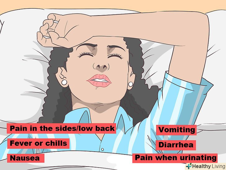Негайно зверніться за медичною допомогою у разі інфекції нирок або передміхурової залози.якщо ви відчуваєте ознаки ІМП кілька днів або тижнів, без належного лікування інфекція може поширитися на нирки. У чоловіків при запущеній ІМП інфекція може вразити передміхурову залозу. Якщо ви відчуваєте перераховані нижче ознаки інфекції нирок або передміхурової залози, негайно зверніться за медичною допомогою:[2]- Біль у боках або попереку;