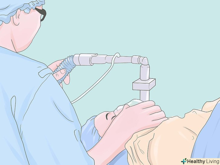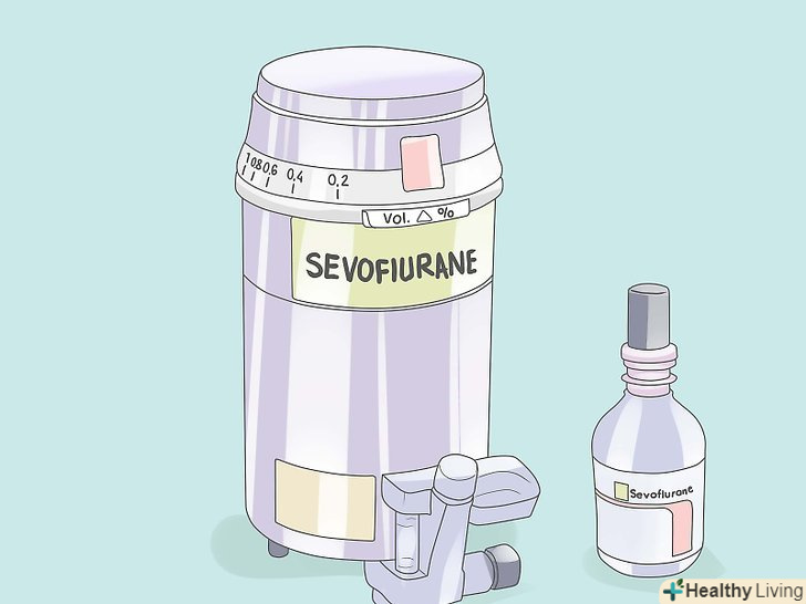 Розрахуйте інгаляційну анестезію.забезпечте підтримку анестезії закисом азоту (N2O) 70%, 30% кисню і потужним інгаляційним агентом, таким як ізофлуран (наприклад, 1%). Використовуючи кров'яний тиск, частоту серцевих скорочень та інші показники глибини анестезії, відрегулюйте необхідну концентрацію реагенту (або збільште кількість внутрішньовенних агентів, таких як фентаніл або пропофол). Інші летючі речовини, що використовуються в загальній анестезії, включають севофлуран, десфлуран або галотан. Ефір в деяких країнах використовується досі.