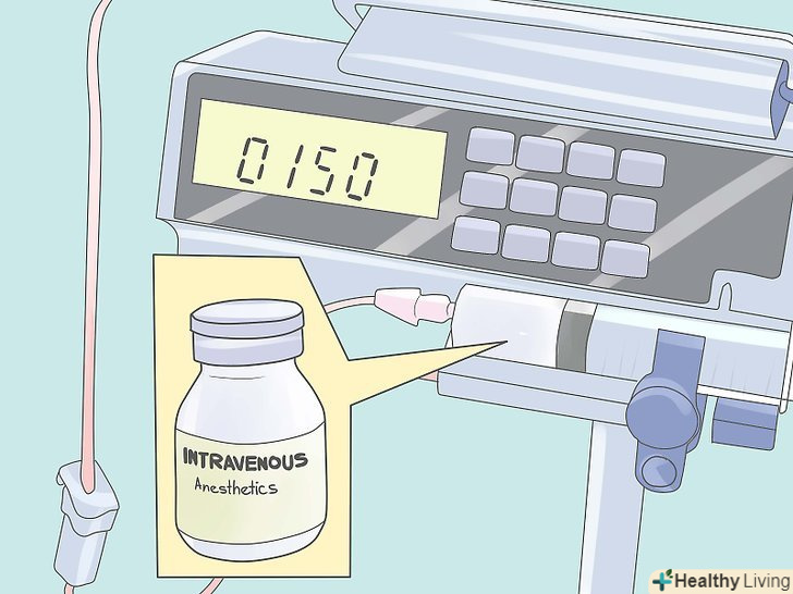 Додайте внутрішньовенний наркоз.додайте фентаніл, мідазолам, пропофол та інші анестетики, необхідні відповідно до вашої клінічної оцінки глибини анестезії. Надбавки фентанілу (50 - 100 мкг) допоможуть підтримувати аналгезію. Деякі лікарі віддають перевагу всьому техніку внутрішньовенної-тотальної внутрішньовенної анестезії, або загальної внутрішньовенної анестезії. Це може бути корисним для пацієнтів із схильністю до злоякісної гіпертермії (що не може забезпечити сукцинілхолін або сильнодіючі інгаляційні засоби, такі як десфлуран, севофлуран або ізофлуран).