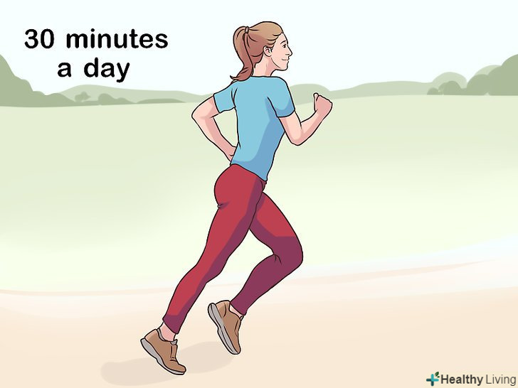 Регулярно займайтеся фізичними вправами.фізичні вправи не тільки покращують обмін речовин, але і пом'якшують побічні ефекти гіпофункції щитовидної залози, такі як втома, депресія і набір ваги. Бігайте або їздите на велосипеді. Запишіться в спортзал і займайтеся там. Виконуйте фізичні вправи як мінімум по 30 хвилин в день.[15]- Якщо ви хочете залишатися активним і знизити рівень стресу, запишіться на заняття йогою. Пошукайте заняття йогою в місцевому спортзалі або студії для йоги.