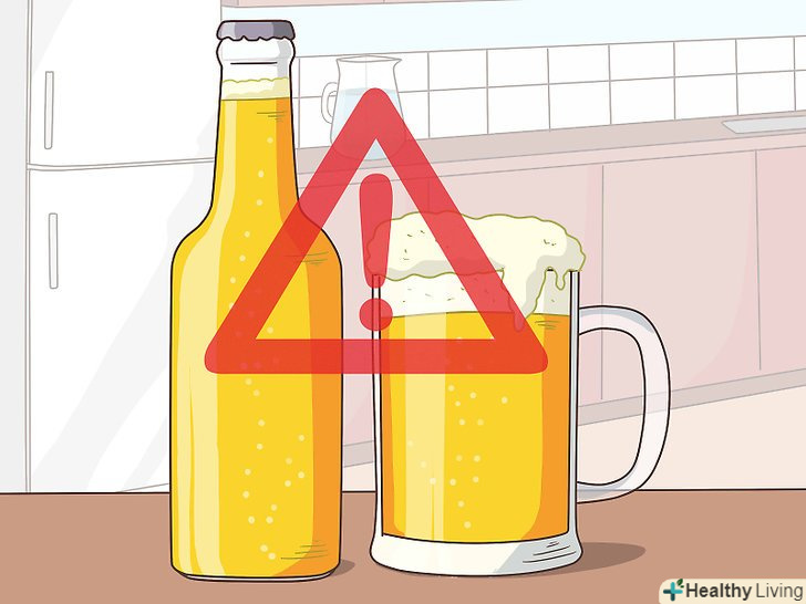 Вживайте менше алкоголю.згідно з деякими дослідженнями, помірне вживання алкоголю (не більше двох порцій кожні кілька днів) позитивно впливає на здоров'я. Проте, часто люди п'ють алкоголь в більшій кількості, що призводить до негативних наслідків.[38]- При надмірному вживанні алкоголю (більше трьох порцій на день або семи порцій на тиждень) можливі такі проблеми зі здоров'ям, як панкреатит, інсульт, високий кров'яний тиск, руйнування клітин печінки і головного мозку.[39]