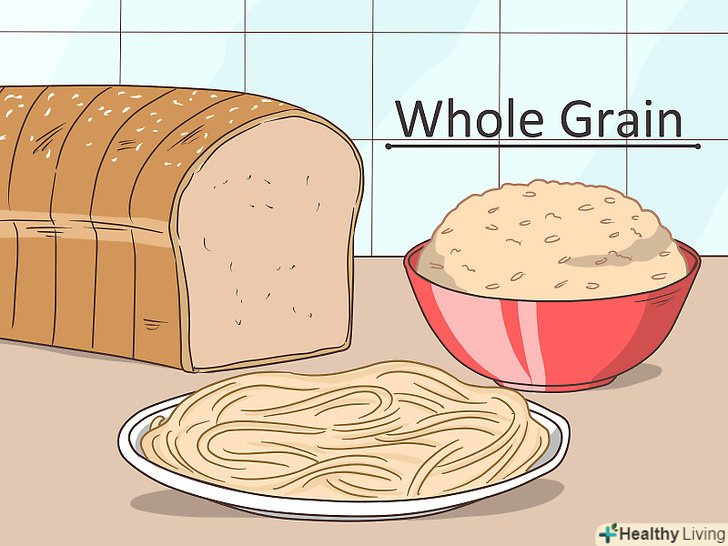 Віддавайте перевагу цільнозерновим продуктам.вони роблять благотворний вплив на здоров'я і загальний стан організму. Намагайтеся вживати в їжу більше цільнозернових продуктів.- Очищені або оброблені зернові продукти містять набагато менше поживних речовин. Як правило, в них менше клітковини, білків та інших корисних елементів.[17]