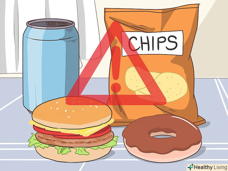 Утримуйтеся від шкідливої їжі і продуктів, що зазнали технологічної обробки.серед великої різноманітності перероблених продуктів (включаючи поживні і шкідливі) частіше можна зустріти такі, в яких міститься більше калорій, жирів, цукру і консервантів.[19]- Більшість дієтологів рекомендують вживати в їжу якомога менше перероблених і шкідливих продуктів. Іноді можна побалувати себе не найкориснішою їжею, але краще ніколи не зловживати.