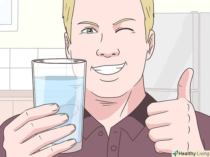 Пийте достатню кількість води.вода містить життєво важливі поживні речовини і виконує важливі функції в організмі. Якщо не вживати достатню кількість рідини щодня, то існує ризик зневоднення.[21]- В середньому дорослій людині необхідно випивати 8 склянок рідини в день. При цьому ряд фахівців рекомендують підвищити норму до 10-13 склянок.[22]