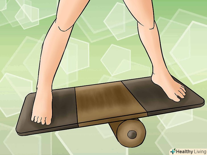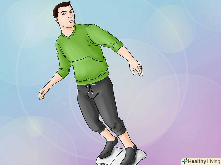 Звичайні вправи на рівновагу.Станьте на балансирну дошку, зведіть ноги разом, а руки опустіть уздовж тіла. Залишайтеся в такому положенні якомога довше. Намагайтеся не розгойдуватися.- Коли ви освоїте цю вправу, спробуйте закрити очі, щоб ускладнити завдання.